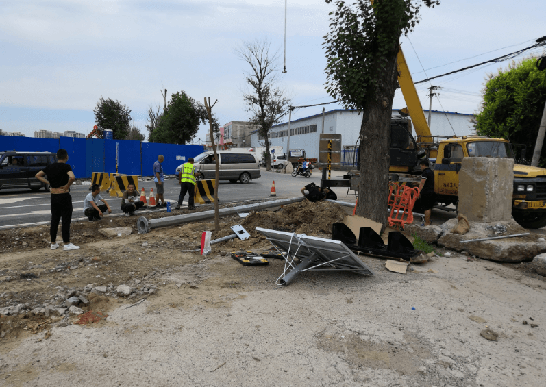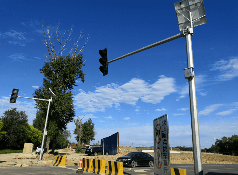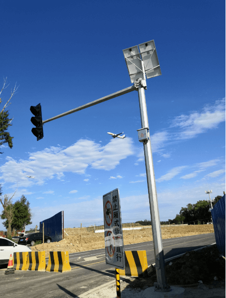 ,由于此路段不便走地下線,故此本次設計全部為太陽能光伏發電,紅綠燈監控桿安裝完成后將為機場周圍居民提供出行便利條件。