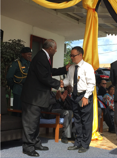 朗斯代爾總統(tǒng)向袁剛頒發(fā)“瓦努阿圖獨(dú)立勛章”