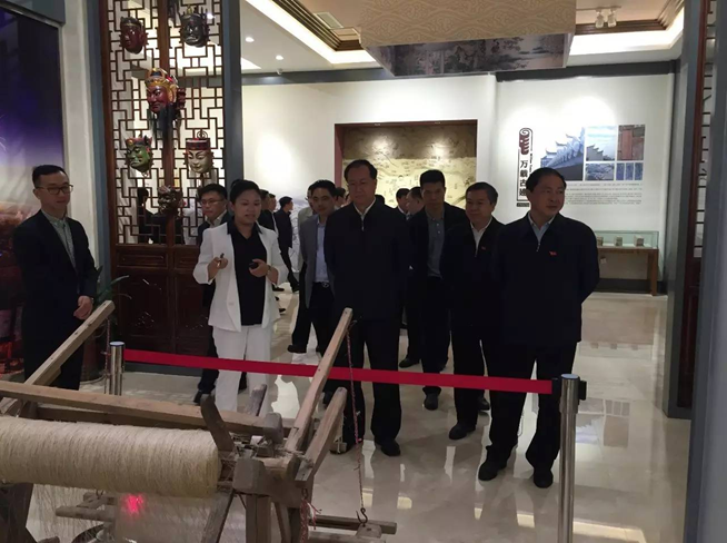 毛偉明首先視察了萬載古城文化展示中心,領(lǐng)略了當(dāng)?shù)厣詈竦拿袼住⒎沁z文化,并認(rèn)真聽取了集團(tuán)萬載瑞辰文化旅游發(fā)展有限公司總經(jīng)理張藜對(duì)古城項(xiàng)目的詳細(xì)介紹。