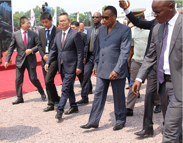 剛果(布)總統(tǒng)薩蘇、參議院議長依圖、國民議會(huì)議長孔巴、總理穆昂巴、內(nèi)閣主要成員、各國駐剛使節(jié)和國際組織駐剛代表;中國商務(wù)部副部長錢克明、進(jìn)出口銀行副行長謝平、駐剛大使夏煌、駐剛使館經(jīng)商處參贊楊佩佩、江蘇省建集團(tuán)總裁仇天青,中資企業(yè)代表以及剛民眾1000余人參加了奠基儀式。