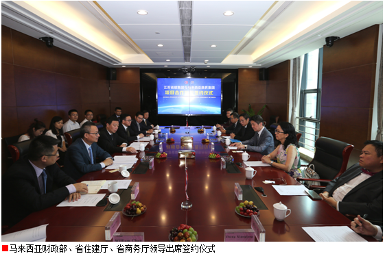7月17日上午,江蘇省建集團與馬來西亞鼎昇集團就馬來西亞80億元人民可負擔(dān)房屋項目舉行合作簽約儀式。馬來西亞財政部副部長拿督李志亮及夫人拿汀李善純、馬來西亞鼎昇集團董事長拿督賴俊瀚,江蘇省住房城鄉(xiāng)建設(shè)廳黨組書記顧小平、江蘇省商務(wù)廳副廳長朱益民、江蘇省商務(wù)廳外經(jīng)處處長陸堅、江蘇省建筑管理總站站長李震、江蘇省建集團總裁仇天青等出席儀式。